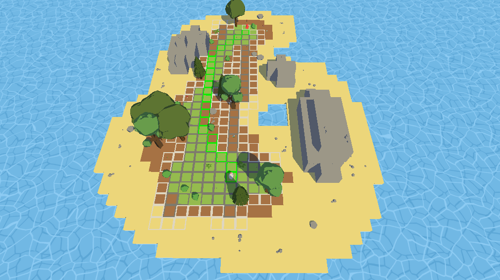 The final project for this topic is all about path finding. In this game, one of three maps can be loaded to display an island with a player character and goal. The player can activate one of three algorithms to operate. The algorithms will find a path from the player character to the goal. The algorithms used are A*, BreadthFirstSearch and Dijkstra.