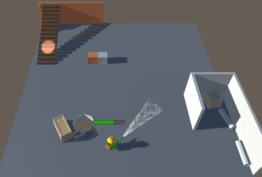 Because of time constraints I was not able to fully realize my vision and goals of the project. Unfortunately, I had to cut some features that were taking too much time, a wall that could be destroyed using the leafblower for example. In the end, I was able to make four levels, each in where a valuable mechanic was introduced for the player. For the project I mainly focused on level structure, core mechanics and dynamics, game feel and feedback loops. I also implemented a final boss fight to test the player’s control over the mechanics.